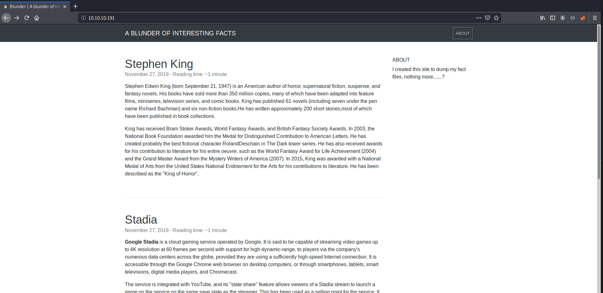|_http-title: Blunder | A blunder of interesting factslet's check the website (apache2 running on port 80)