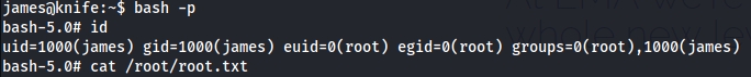 uid=1000(james) gid=1000(james) groups=1000(james)