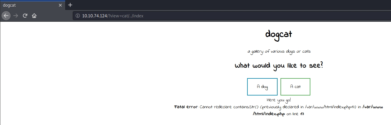 this message leads us to think that the system checks whether we type "cat or dog" in the url