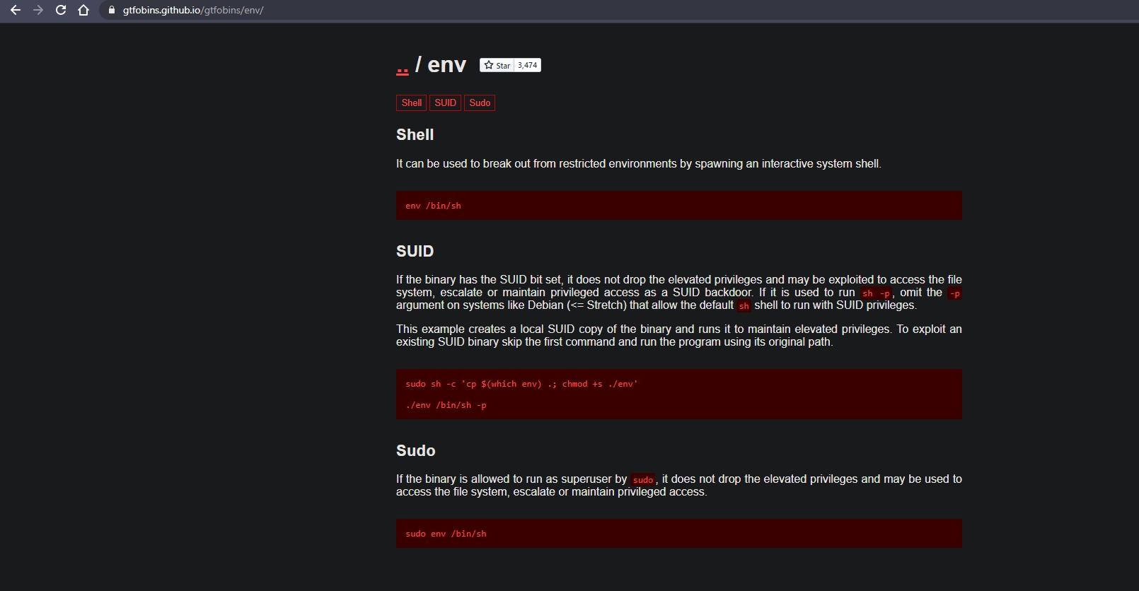 linpeas pointed to this binary (/usr/bin/env) as a 99% chance of being vulnerable to privilege escalation