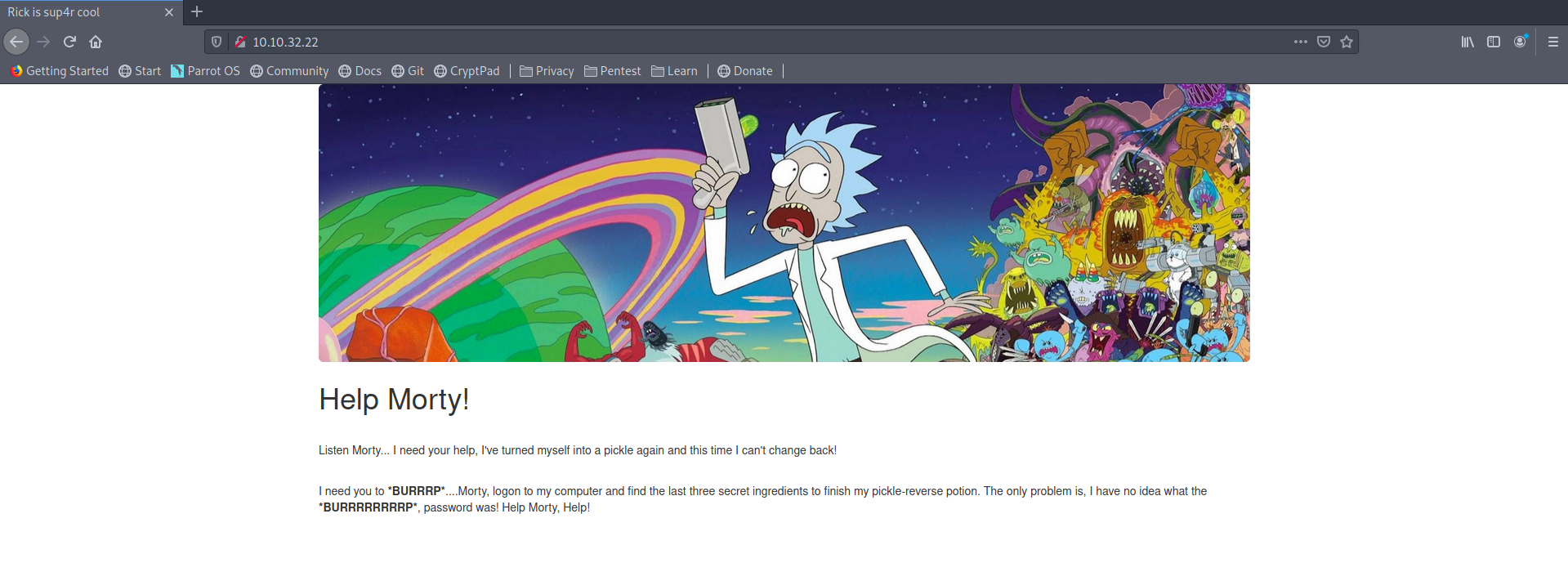 Pickle Rick is a Rick and Morty themed tryhackme room where we exploit a webserver to find 3 ingredients or flags.